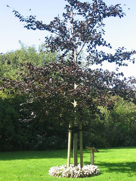 naast Pniëlkerk Geplant t.g.v. 25-jarig huwelijksfeest van koningin Beatrix en prins Claus Bruine beuk. (Correcte naam: Fagus Silvatica atro-purpurea). | |||||||||||