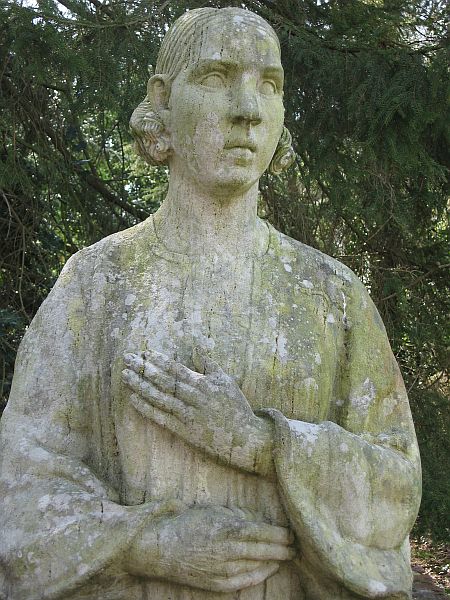 | Zittend figuur van steen Ans van Haersolte | Nu in groenstrook langs Stichtseweg |