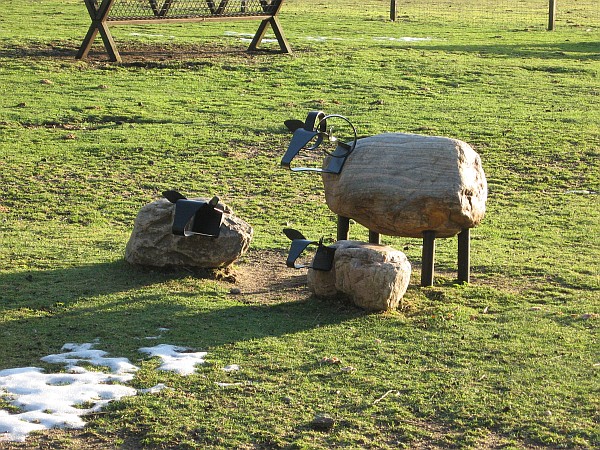 Ter gelegenheid van de heropening van de schaapskooi op de Blaricummerheide op 4 april 2009 zijn schapen van graniet (afkomstig van zwerfkeieien uit de ijstijd) geplaatst.