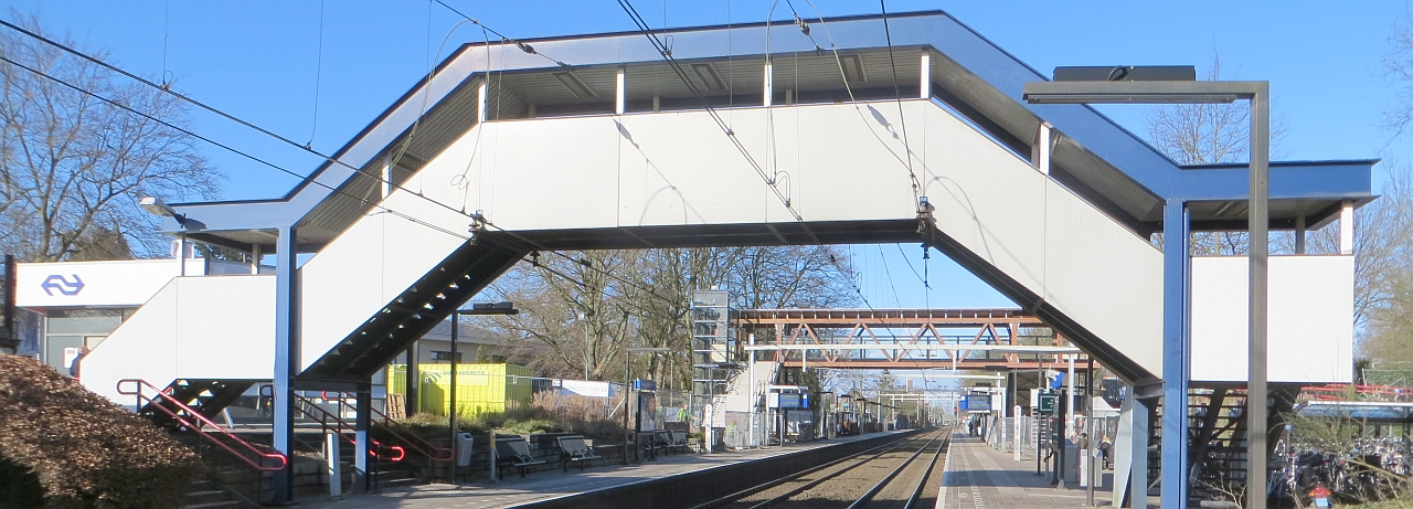 Ontwerp van de voetgangersbrug (staal met houten overkapping) van K. van der Gaast (1966).