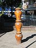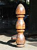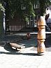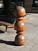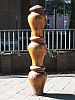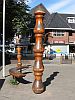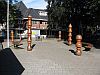 Op het schoolplein staan een aantal houten kunstwerken van de kunstenaar Miriam Bolder.