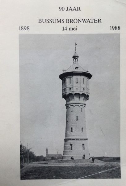 Watertoren, ten zuiden daarvan tussen Bussumergrindweg en spoorlijn Naarden-Bussum - Hilversum: machinegebouw, machinistenwoningen en waterputten.