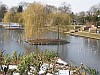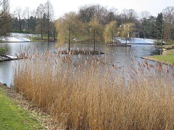 Vijver, met 2 eilandjes, ca 1 ha groot.