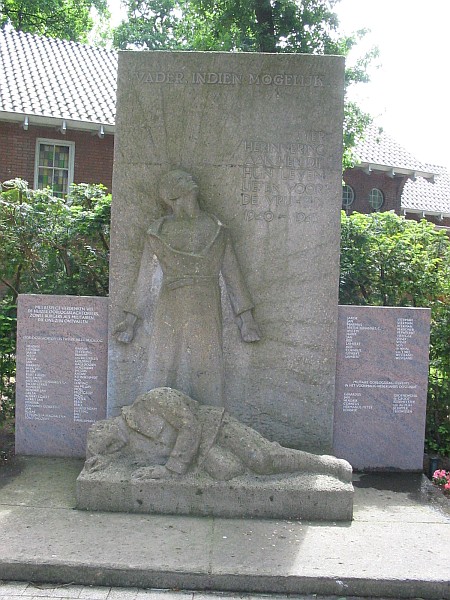 Tekst op het monument: "VADER, INDIEN MOGELIJK... TER HERINNERING AAN HEN DIE HUN LEVEN LIETEN VOOR DE VRIJHEID 1940 - 1945".