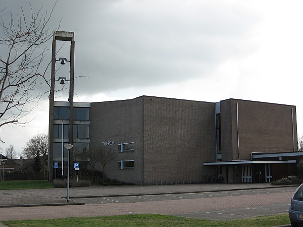 Kerkgebouw met losstaande klokkentoren.