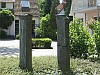 Tuin van Eemnesserweg 53, Laren.Deze grenspalen uit 1719 stonden oorspronkelijk op de grens van de provincies Noord-Holland en Utrecht.