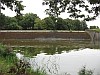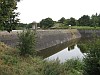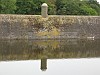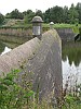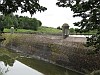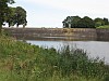 Gemetselde dammen in de vestinggracht, als onderdeel van de zeewaterkering.