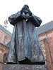 op de gevel van het Comeniusmuseum. - Standbeeld Comenius,