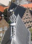 ![]() | Dakruiter (torentje op kruising schip en dwarsbeuken). Zeskantig torentje. In de windvaan het kerkzegel van de Grote Kerk (de Goede Herder). Het luidklokje is afkomstig van de Hofstede "Oud Bussem, heeft in de voormalige Andreaskerk in Naarden gehangen en is bij de laatste grote restauratie in de dakruiter van de Grote kerk gehangen. |