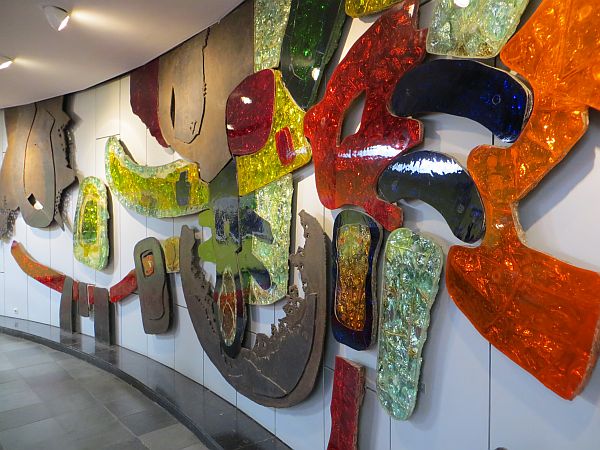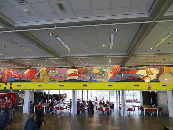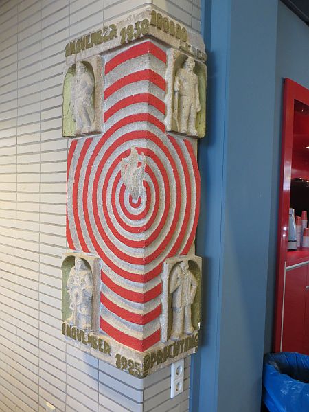 - Hoog in de foyer bevindt zich een houtreliëf met olieverfschildering van Bert Grotjohann uit 1979