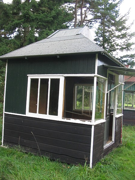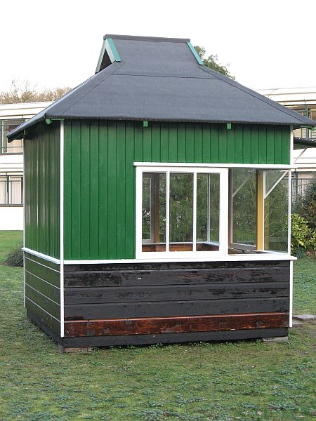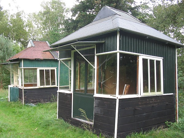 De hutten zijn gebouwd door in Zonnestraal opgenomen patiënten in de werkplaats op het terrein.
