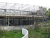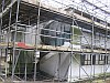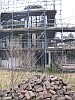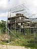 Vanwege de bouwvalligheid in 2003 in de steigers gezet en ingepakt in witte folie, in afwachting van besluitvorming over de restauratie.