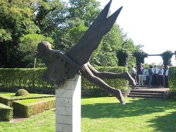 In de tuin van landgoed Zwaluwenberg Geschenk van de officieren van de Inspecteur Generaal van de Krijgsmacht aan Prins Bernhard Zie ook: