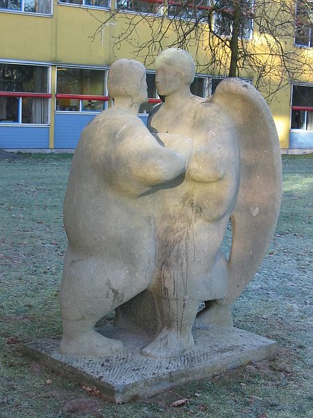 Jacob en de EngelBeeld in de tuin van ziekenhuis in Hilversum (Tergooiziekenhuizen, lokatie Hilversum). Beeld afkomstig van de ingang van het voormalige Diakonessenziekenhuis dat voorheen op deze locatie stond. Hilversum