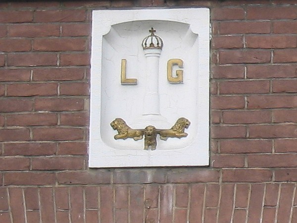 Gevelsteen met het wapen van de Belgische stad Luik met 3 leeuwen.