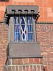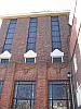 De terracotta ornamenten (sprekende en schrijvende mens)en glas-in-loodramen ("kritiek", "nieuws" en "advertentie") die het gebouw sieren zijn van W.C. Brouwer.