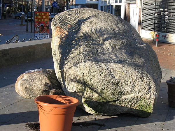 In mei 2007 is de kei iets verplaatst naar een plek op het plein vlak naast de kiosk.