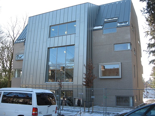 Opvallend is de zinken gevel.