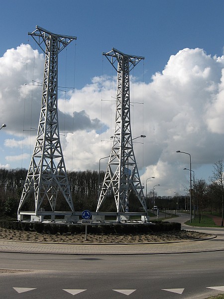 Stalen replica (schaal 1:5)) van een aantal van de oorspronkelijke zendmasten.Rotonde Blaricummerstraat - Randweg Midden, Huizen