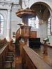 | De preekstoel is vervaardigd naar een ontwerp van de heer Schultsz.