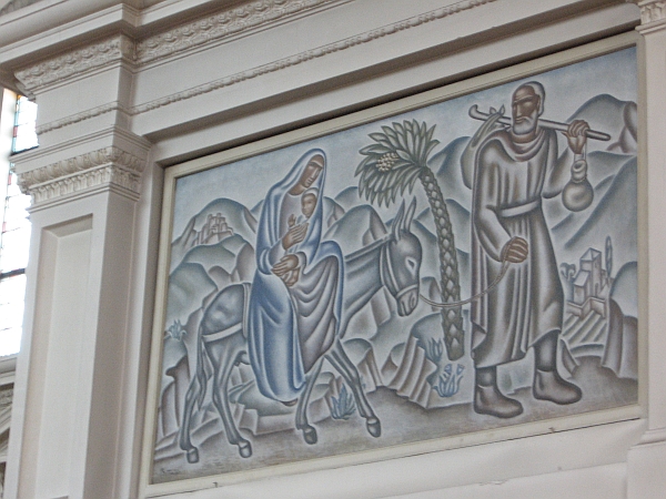 | 4 kleinere afbeeldingen van de evangelisten zijn in 1937 aan de beide zijmuren aangebracht. In het transept zijn 4 afbeeldingen aangebracht: