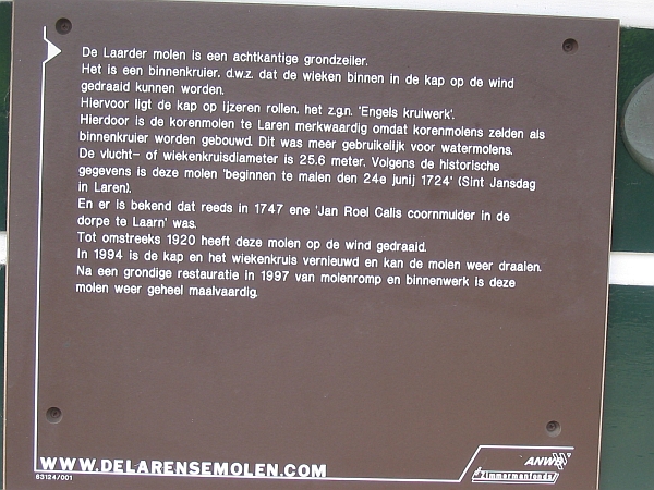 Gebouwd in 1773 (onderdelen waarschijnlijk ouder - zie inscriptie '1745' - mogelijk voordien watermolen in Naarden..