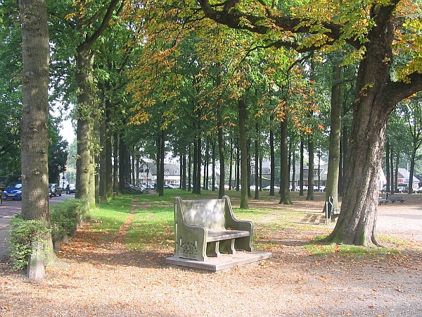 Brink, LarenGedenkbankje voor de dorpsonderwijzer Johan van Wulfen (1838 - 1912).