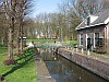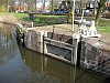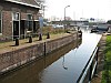 Sluis tussen vestinggracht en Vecht (westzijde) met brug.