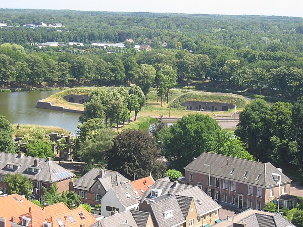 Over de rand van het ravelijn loopt het fiets- en voetpad naar de Utrechtse Poort.