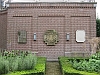 In de tuin, op de muur van een bijgebouw een drietal panelen afkomstig van het Gemeenlandshuis (architect K.P.C. de Bazel) in Hilversum (1917), dat is afgebroken (1968) om plaats te maken voor het Mediapark.