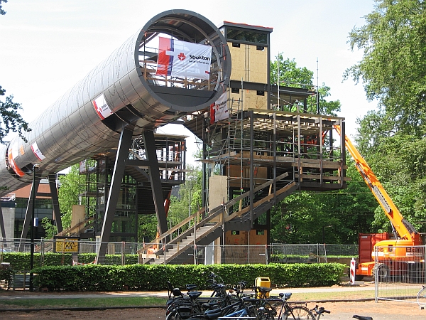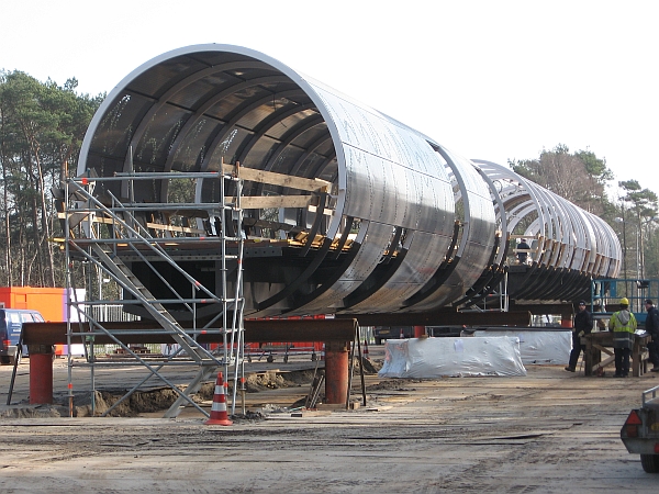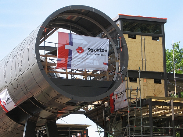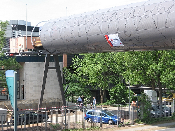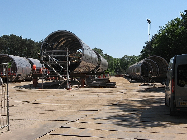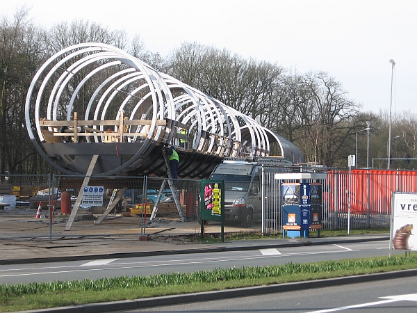 De buizen zijn op de hoek Witte Kruislaan - Mies Bouwmanboulevard vervaardigd.