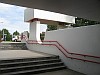 Tunnel onder station door naar noord-oosten, alwaar groot parkeerterrein.