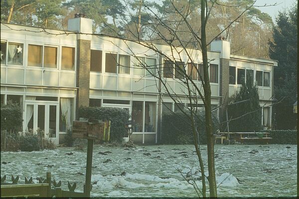 In 1938 blok van 3 woningen, links van de ingang aan de van Ghentlaan. (Rijksmonument)